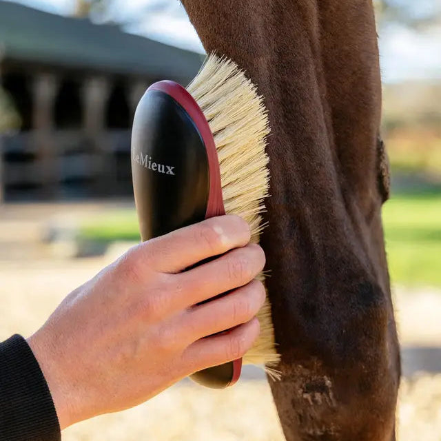 Easily groom those sensitive equine areas with the Haas Kopfburste Small Grooming Brush! Crafted in Germany, this brush is designed without nails or glue, ensuring safety and durability for both horse and rider. The small, soft horsehair bristles are perfect for removing dust and dander from the face or legs.